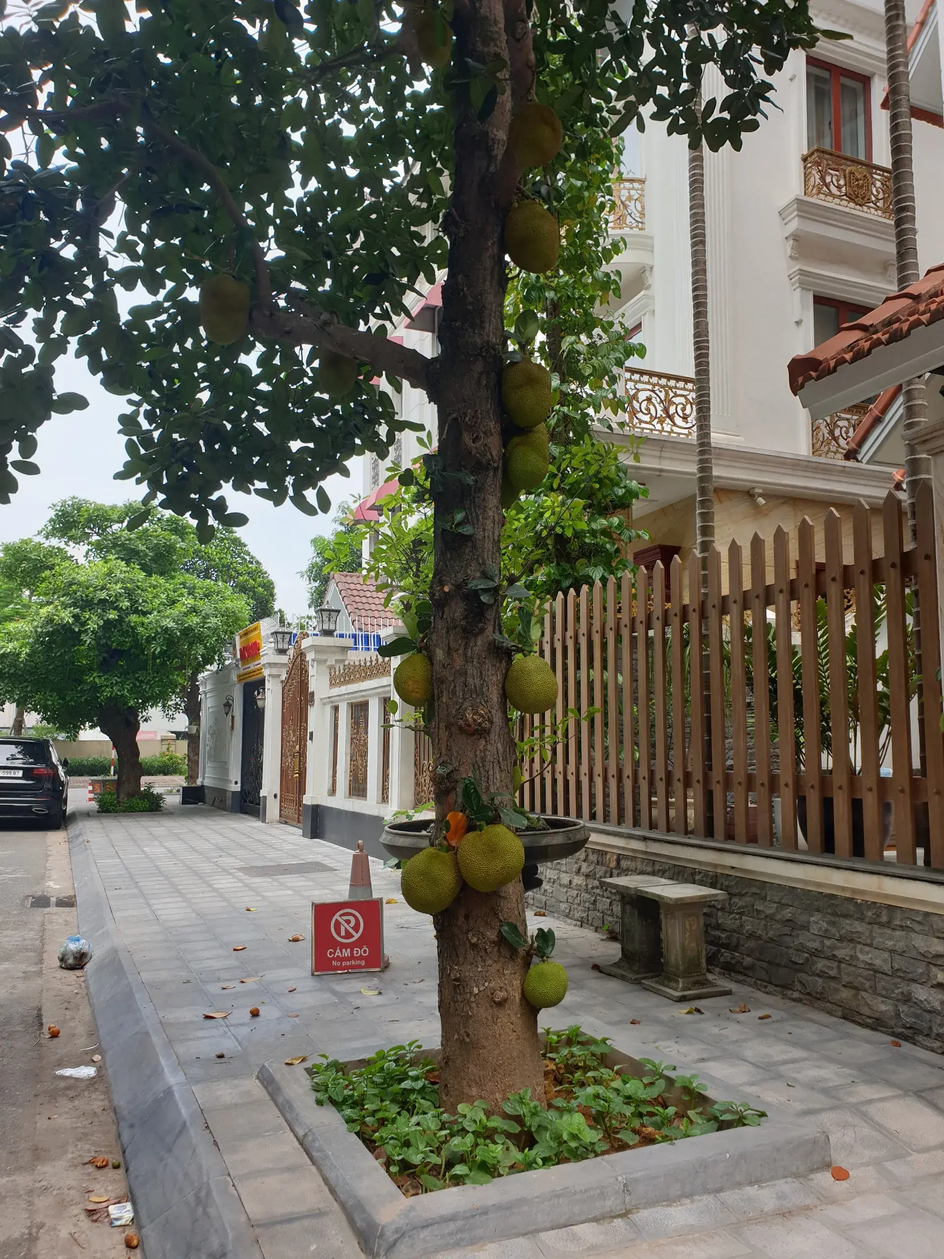 Nhà nằm trên trục đường chính ô tô tránh vỉa hè rộng.